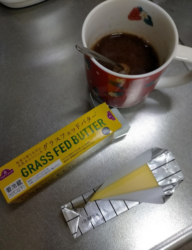 イオンでグラスフェッドバターをGETしたので早速バターコーヒーを飲んでみたく、コーヒーに溶かして飲みました🎵(*’▽’)