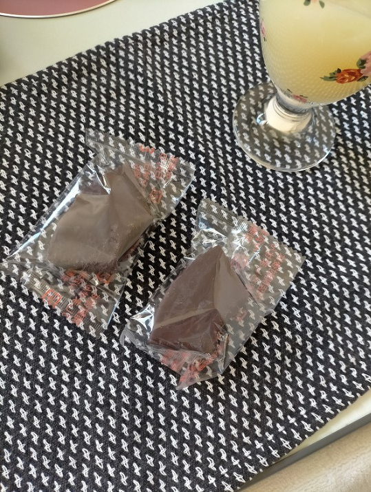 デザートは市販のチョコバウムクーヘン🎵 ドイツと言えばバウムクーヘン、でしょ?🤗🌸