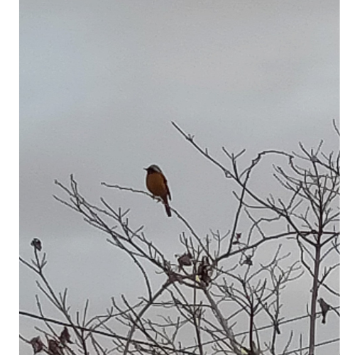 信号待ちしていたら、交差点近くの家のお庭の木にジョウビタキを発見